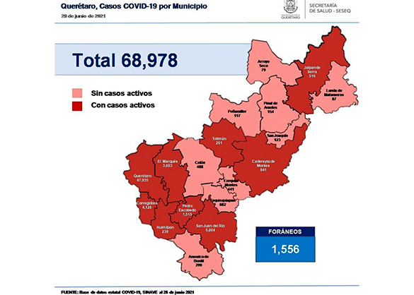 Del sábado pasado a este lunes, en el estado se sumaron 43 casos de la enfermedad; se trata de 20 mujeres y 23 hombres, lo que da un registro acumulado de 68 mil 978 casos; 51% son mujeres y 49% son hombres.