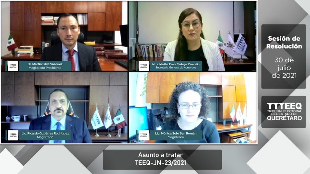 El juicio de nulidad con clave de identificación TEEQ-JN-24/2021 fue promovido por el partido político Morena en contra de la declaración de validez de la elección a la gubernatura del Estado de Querétaro y la constancia de mayoría, aprobadas en la Sesión Extraordinaria del IEEQ.