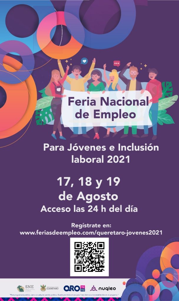 En el marco de la iniciativa “Reactivemos Querétaro”, la Secretaría del Trabajo, a través del Servicio Nacional de Empleo (SNE) Querétaro y con la colaboración de la Secretaría de la Juventud, la entidad participará en la “Feria Nacional de Empleo para Jóvenes e Inclusión Laboral”.