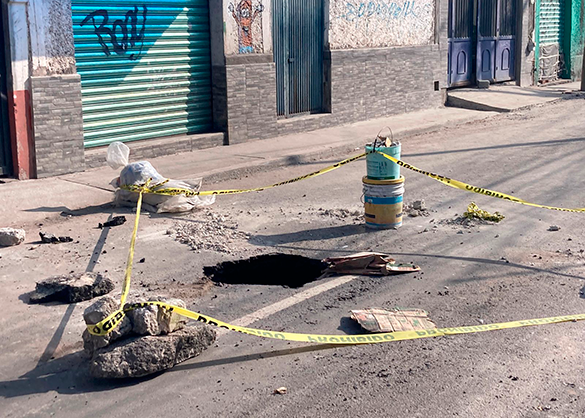 Esta mañana se recibió el reporte de un socavón sobre la prolongación de la calle 18 de Marzo en la colonia Felipe Carrillo Puerto.
