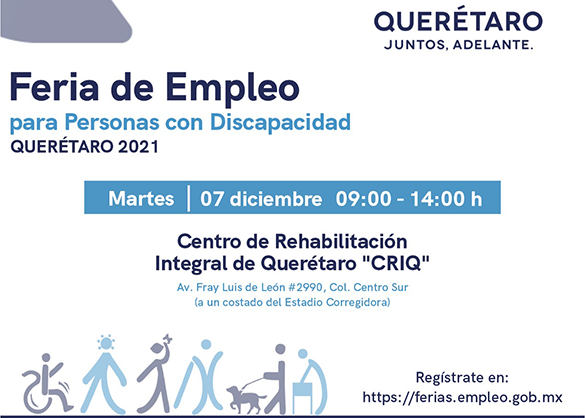 La Secretaría del Trabajo (ST), a través del Servicio Nacional de Empleo Querétaro (SNE), en coordinación con el Sistema Estatal para el Desarrollo Integral de la Familia (SEDIF), llevará a cabo dos ferias de Empleo para Personas con Discapacidad, en la cual se ofertarán 300 vacantes para personas de 18 a 55 años, con un total de 20 empresas participantes.
