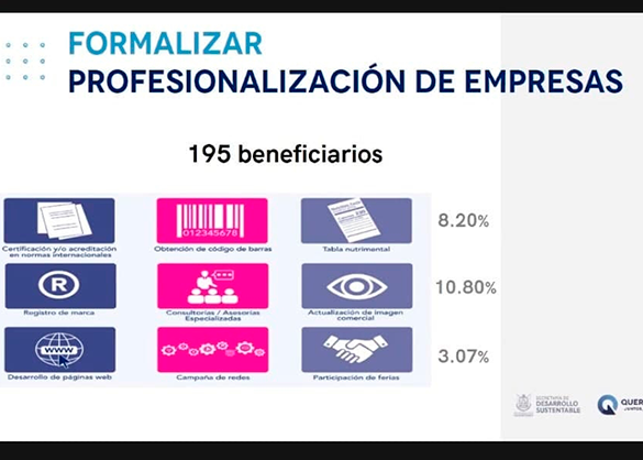 Cabe señalar que desde SEDESU se impulsa la cultura emprendedora a través de cursos y talleres, asesorías, incubadoras, consultorías, alianzas, programas de competitividad, así como organización de encuentros de negocios, todo esto permite desarrollar proveedores.