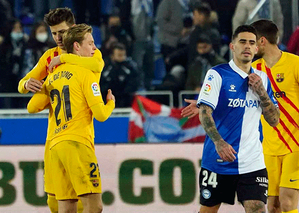 El FC Barcelona superó 0-1 al Deportivo Alavés este domingo en la jornada 22 de LaLiga española celebrada en Mendizorroza, gracias a un gol de Frenkie de Jong en el minuto 87, para seguir en la pelea por la zona de Champions League, aunque sufriendo.