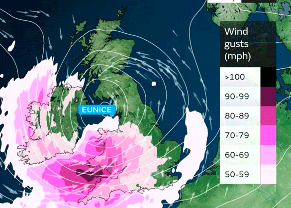 El servicio meteorológico del Reino Unido emitió el jueves una inusual alerta roja debido a la tormenta Eunice, que puede “provocar importantes perturbaciones” el viernes debido a “vientos extremadamente fuertes”.