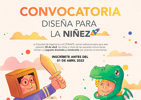 Comprometida con impulsar acciones que generen bienestar social, la Facultad de Ingeniería (FI) suma esfuerzos con el Consejo Nacional de Fomento Educativo (Conafe) para lanzar la convocatoria “Diseña para la niñez”, primer concurso a nivel nacional para que jóvenes universitarios diseñen y construyan juguetes tradicionales mexicanos, que serán donados a infantes de escuelas comunitarias del estado de Querétaro este próximo Día del Niño y la Niña.