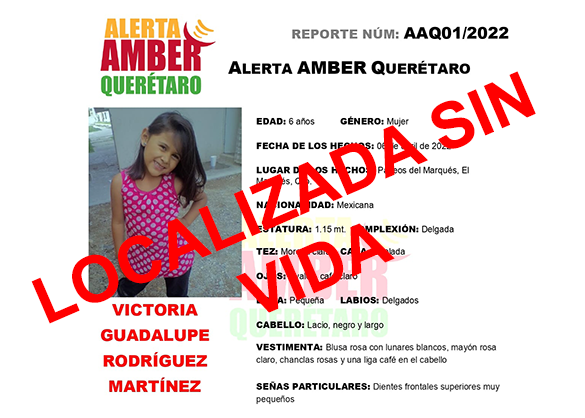 La Fiscalía General del Estado informa en seguimiento de la activación de la Alerta AMBER de la niña Victoria Guadalupe lo siguiente:
