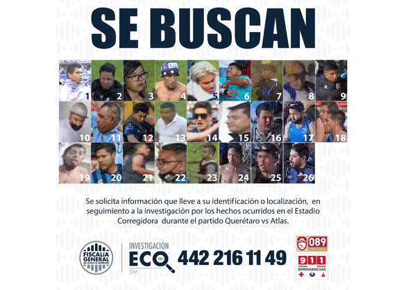 El ECO ha reconocido imágenes de personas, que aparecen en los 400 materiales audiovisuales que se analizan; de ellas, solicitamos a la ciudadanía que si los conoce proporcione información verídica sobre su nombre, lugar de ubicación o alguno otro que nos permita su detención. Toda aportación será de manera anónima, garantizando su integridad y el principio de debido proceso penal.
