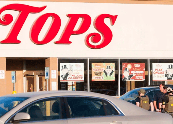 En redes sociales circula la grabación que el asesino en Buffalo realizó desde que viajaba en su automóvil tumbo al supermercado Tops —ubicado en un barrio con mayor población de personas afroamericanas— y hasta que, fuertemente armado, desciende de éste en el estacionamiento y comienza a disparar en contra de las personas que se encuentran en el sitio, incluso una mujer blanca es su primera víctima.
