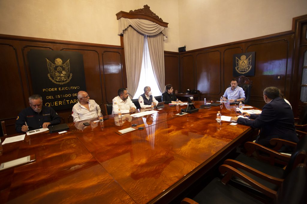 En la reunión estuvieron presentes la secretaria de Gobierno, María Guadalupe Murguía Gutiérrez; el coordinador estatal de Protección Civil, Javier Amaya Torres; el director general de Protección Civil, Oscar Zepeda Ramos; el director general para la Gestión de Riesgos, Marcos Eduardo Olmos Tomasini; el director general de Vinculación, Innovación y Normativa, Héctor Amparano Herrera y el director general del Centro Nacional de Prevención de Desastres, Enrique Guevara Ortiz.