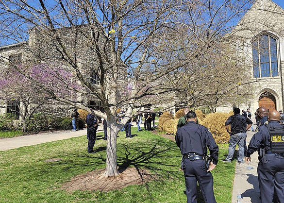 Ayer, después del tiroteo de Nashville, decenas de personas acudieron a las instalaciones para rezar y expresar condolencias a la comunidad escolar y los vecinos.