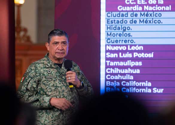 Participaron en este informe, la secretaria de Seguridad y Protección Ciudadana, Rosa Icela Rodríguez Velázquez; el subsecretario de Seguridad Pública, Luis Rodríguez Bucio y el comandante de la Guardia Nacional, David Córdova Campos.