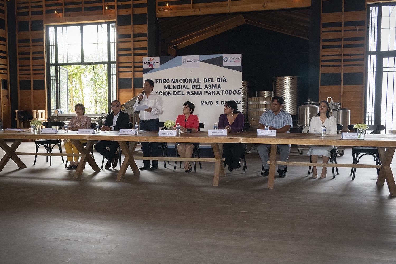 Participaron en la capacitación la subdirectora de Epidemiología de Servicios de Salud del Estado de Querétaro (SESEQ), Rosalba Romero Selis; el líder federal del Programa de Enfermedades Respiratorias, Robert Camargo Ángeles; el director de la Jurisdicción Sanitaria número 3, Hugo Calixto González; la responsable estatal del Programa de Enfermedades Respiratorias, Sofía Hernández Santiago; el director del Hospital General de Cadereyta, Rubén Isidro Aparicio Mora, entre otras personalidades.