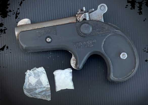 En la Zona Industrial Valle de Oro, elementos policiales aprehendieron a un sujeto que tenía consigo aparente metanfetamina y un arma réplica adaptada para detonar cartuchos, por lo que al incurrir en diversos delitos fue enviado ante la autoridad.