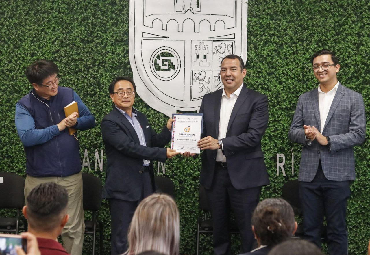 En el evento -donde estuvieron presentes el presidente de LG Innotek México, Seongwan Lee; el gerente de Administración la compañía, Won Hong; el líder del Área Administrativa de esta misma, Rodolfo Reyes Andrade; la regidora síndica del Ayuntamiento de San Juan del Río, Karla Viviana Cortés Ocampo; la coordinadora Territorial del CONAFE, Alejandra Torres Martínez; el director de la Juventud en el municipio, Luis Alberto Galván Hernández, así como educadoras y educadores comunitarios del CONAFE-, se entregó, por primera vez, el distintivo Creer Joven a LG Innotek México, que cree en la juventud, defiende la educación y ama a San Juan del Río.