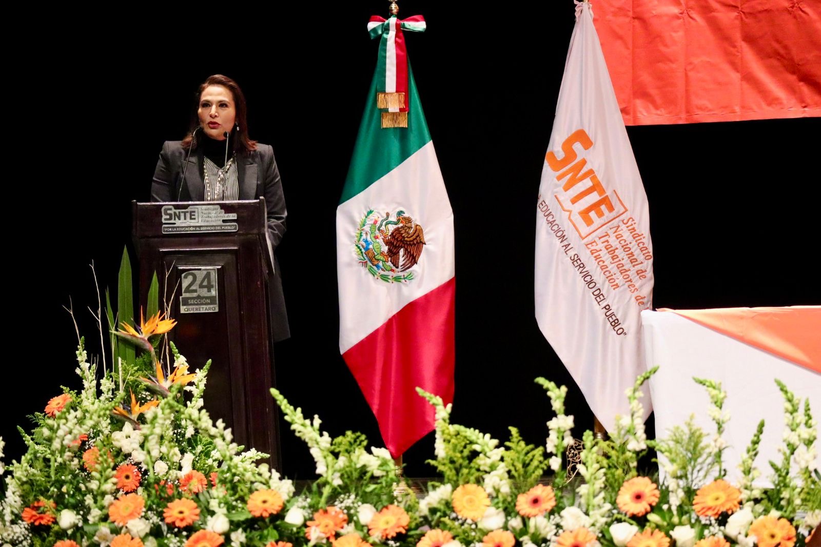 Durante su mensaje, Soto Obregón aseguró que la calidad del sistema educativo se debe a la formación de sus docentes, por lo que el estado es potencia en este rubro, al ubicarse en tercer lugar a nivel nacional en la conclusión de trayectorias escolares completas; además, reconoció que las y los maestros queretanos son aliados para hacer de las escuelas el segundo sitio más seguro después del hogar.