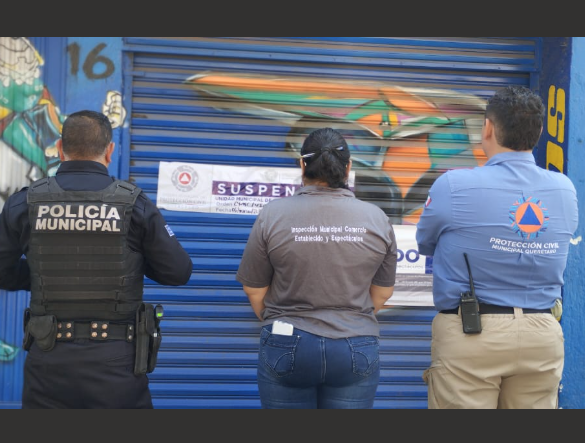 Con el propósito de verificar que los establecimientos comerciales funcionen de manera legal y acorde a la ley, personal policial de la Secretaría de Seguridad Pública del Municipio de Querétaro en coordinación con Protección Civil Municipal y la Dirección de Inspección Municipal, clausuraron dos establecimientos por no contar con los permisos correspondientes.