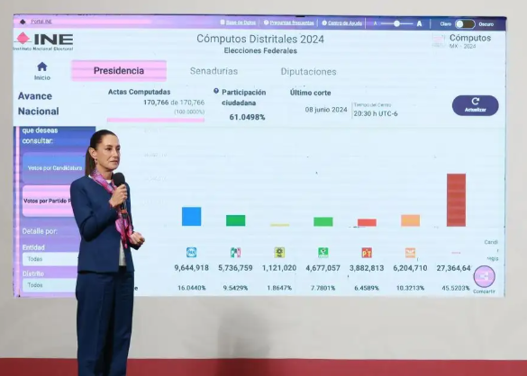 EXTRACTO: La mandataria elogió los resultados de la elección para reformar el Poder Judicial de la Federación, y descalificó los augurios de la oposición