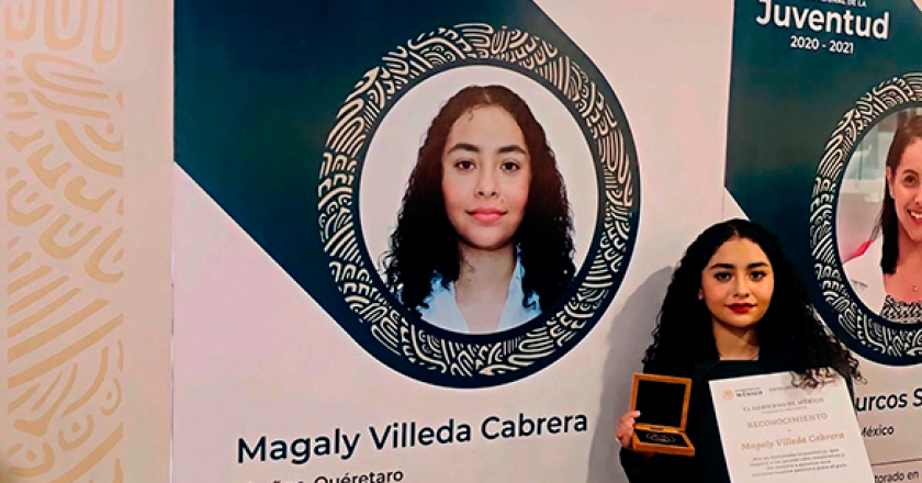 La estudiante Magaly Villeda Cabrera, de la Escuela de Bachilleres (EB), Campus Jalpan de la Universidad Autónoma de Querétaro (UAQ), obtuvo el pasado mes de diciembre el Premio Nacional de la Juventud 2020-2021, que entrega el Gobierno de México, a través del Instituto Mexicano de la Juventud, que es el máximo reconocimiento que se hace a jóvenes de entre 13 y 29 años de edad, que aportan su talento a la sociedad.