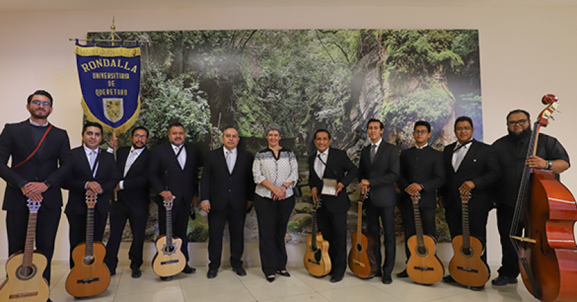 Durante la entrega de la medalla se realizó la lectura de la semblanza de la Rondalla Universitaria, a la cual señalaron como referente nacional queretano de la música del género, caracterizado por su estilo alegre y fresco.
