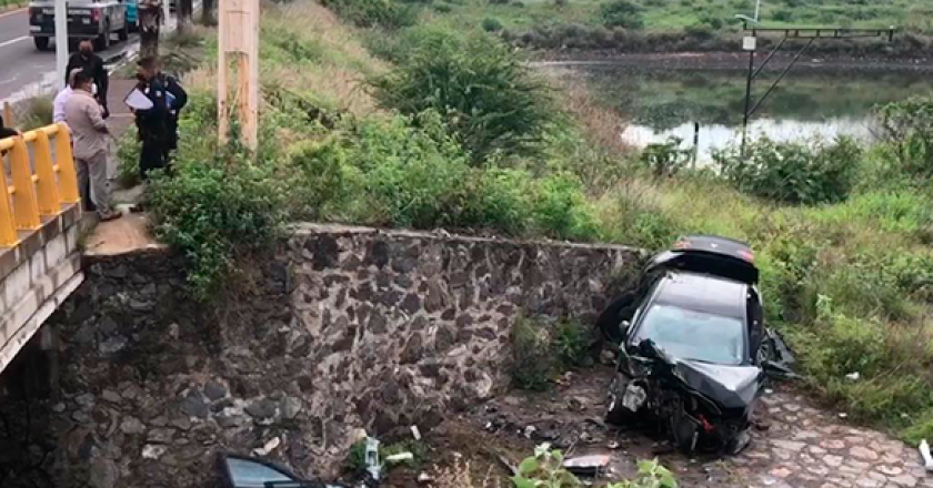 El aparatoso accidente se registró en el acceso del Fraccionamiento El Mirador, donde el conductor fue atendido por servicios de emergencia, después de que saliera del camino y cayera de una altura de cuatro metros aproximadamente.
