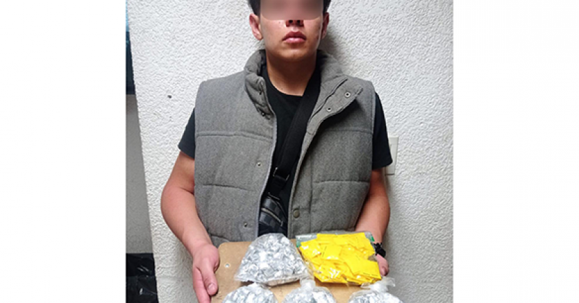 Elementos de la Policía Estatal detuvieron y pusieron a disposición de la autoridad competente a José Manuel “N”, luego de que se localizara entre sus pertenencias 10 envoltorios plásticos de metanfetamina.